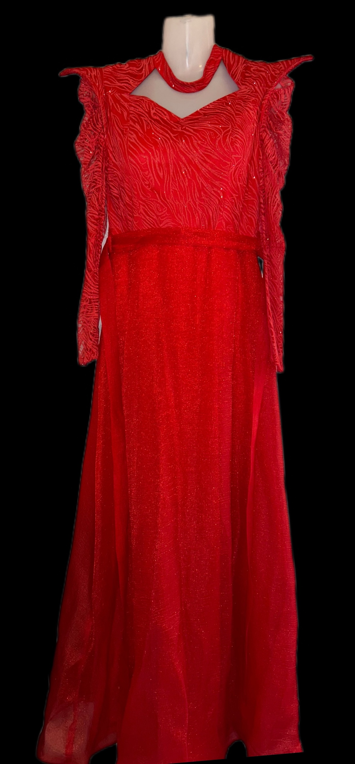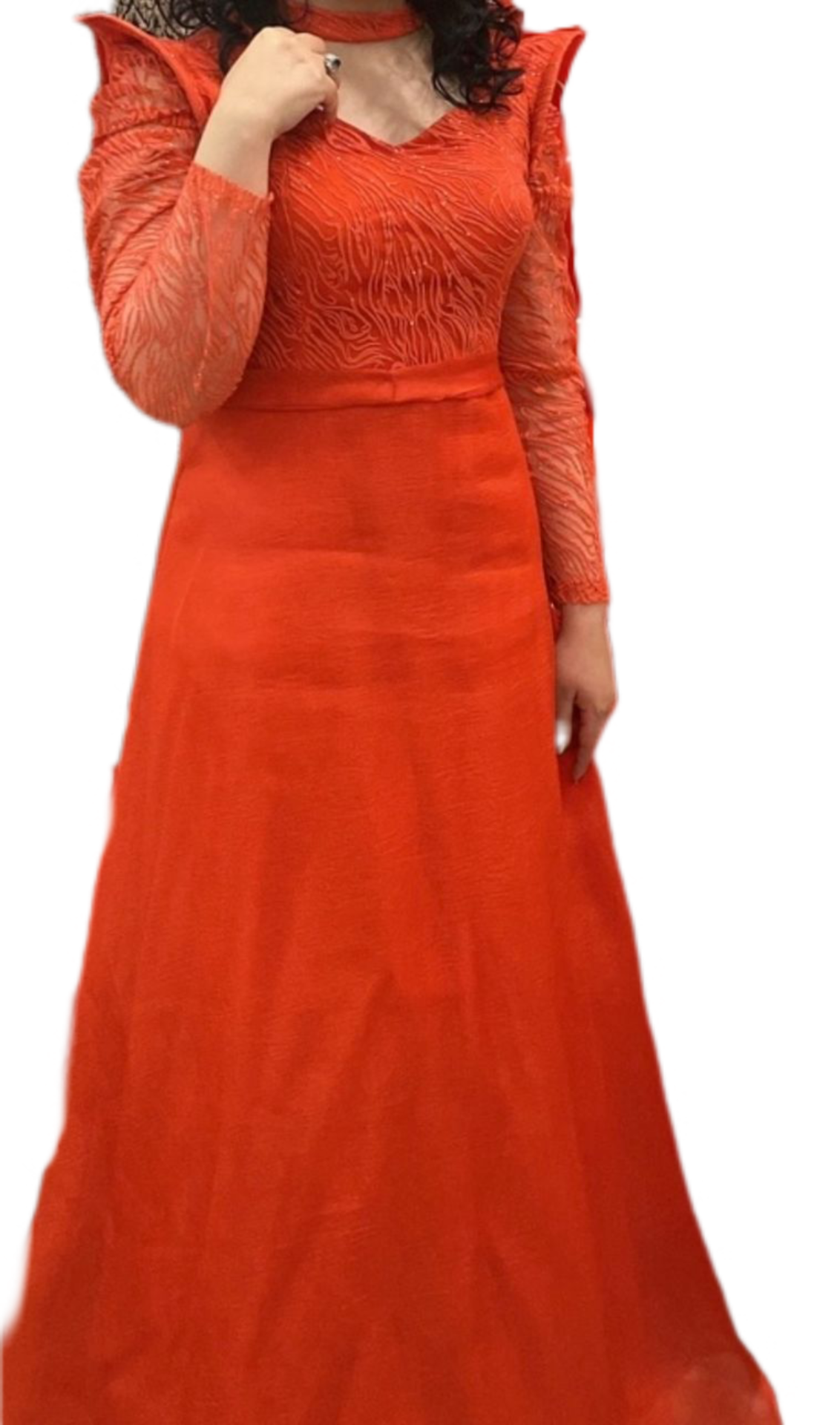 توضیحات: لباس مجلسی بلند قرمز با طراحی خاص و دوخت تمیز.