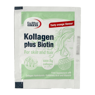 ساشه کلاژن پلاس بیوتین یوروویتال یک مکمل تغذیهای قدرتمند برای حفظ سلامت و زیبایی پوست، مو و ناخن است. این محصول حاوی ۵۰۰۰ میلیگرم کلاژن هیدرولیز شده دریایی، ۱۰۰۰ میکروگرم بیوتین، هیالورونیک اسید و ویتامین C بوده و با طعم دلپذیر پرتقالی عرضه میشود. فرمولاسیون آن تحت لیسانس آلمان و تولید ایران است.